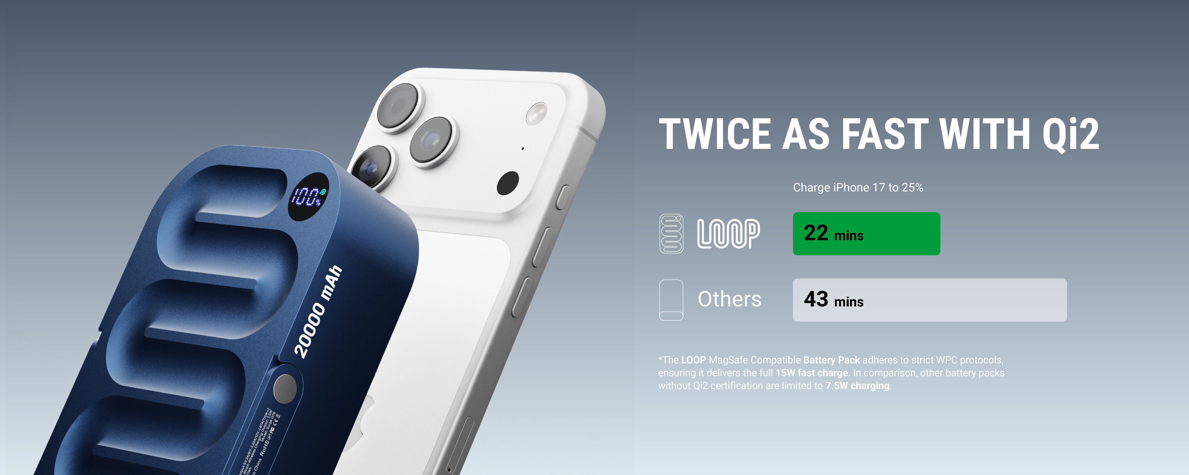 WPC-certified Qi2 lets you snap into the unparalleled world of MagSafe-style 15W wireless charging. More efficient, faster and highly compatible, Loop is all set to power up your existing Apple ecosystem while being future-ready to charge Qi2 Android phones too.